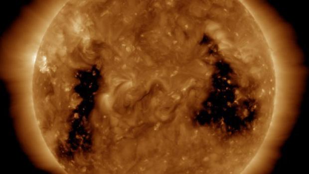 There's a lot of talk about a large hole in the sun right now (cue the Dwight Schrute song). Coronal holes are massive holes in the sun's atmosphere that come about because of open magnetic field lines. Fast-moving solar winds come screaming out of these, sometimes causing aurora borealis stuff.