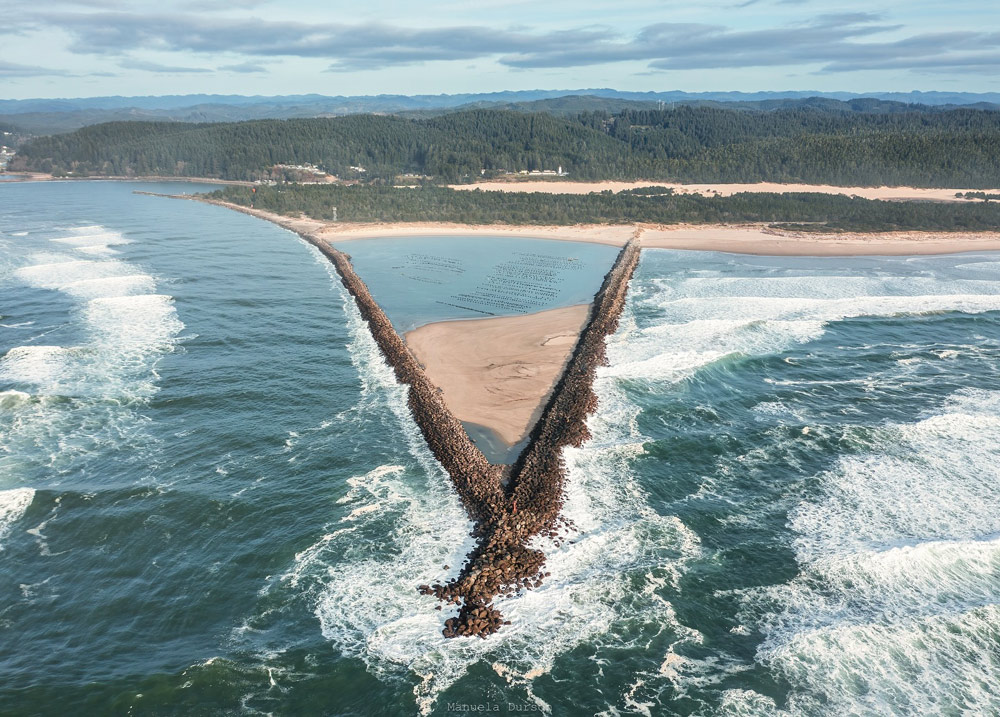 It’s called Ziolkouski Beach Park, a wide expanse of beach – and a few other things - that sit where the sands of the Winchester Bay area and the Umpqua River meet. All of it quite near Reedsport. There, you’ll find a giant triangle, though it’s not of the mysterious kind. It’s a jetty formation, perhaps the most unusual of its kind on the whole of the Oregon coast. It’s really two jetties in one – two massive rip-rap structures jutting out into the ocean and then connecting to each other to form the entire south jetty of the rivermouth.