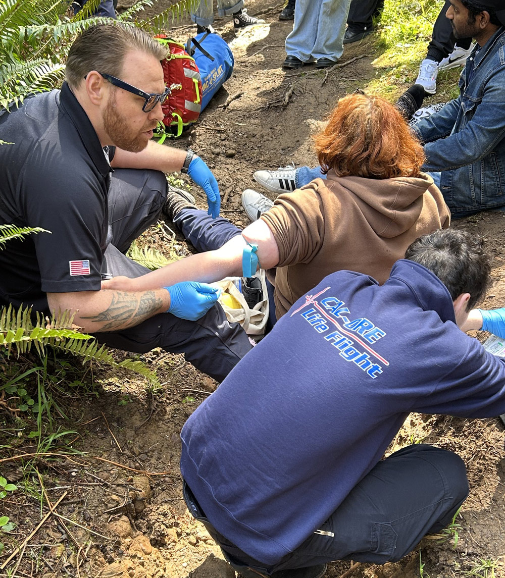 First responders found Osberg roughly three-quarters of the way down the trail, where several bystanders had stayed with her until help arrived. Medical crews treated her injury before rescuers carried her back up to the parking area. She was then transported to Curry General Hospital.