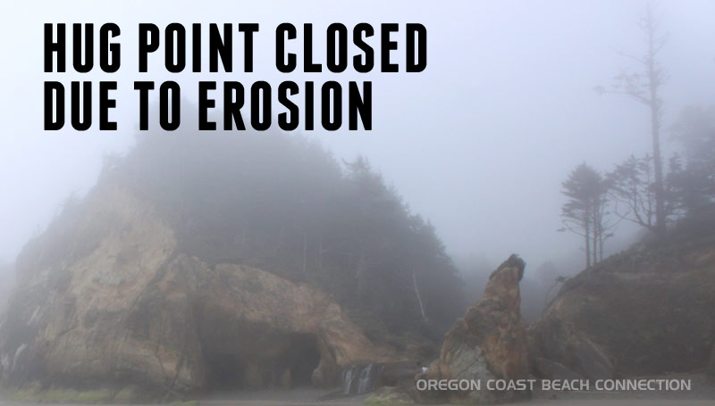 (Cannon Beach, Oregon) – Recent storms have taken out parts of a favorite beach on the north Oregon coast, and now Hug Point State Recreation Site is closed indefinitely. FOR UPDATE SEE More on Hug Point Closure: Damage at the N. Oregon Coast Legend, Possible Timeline
