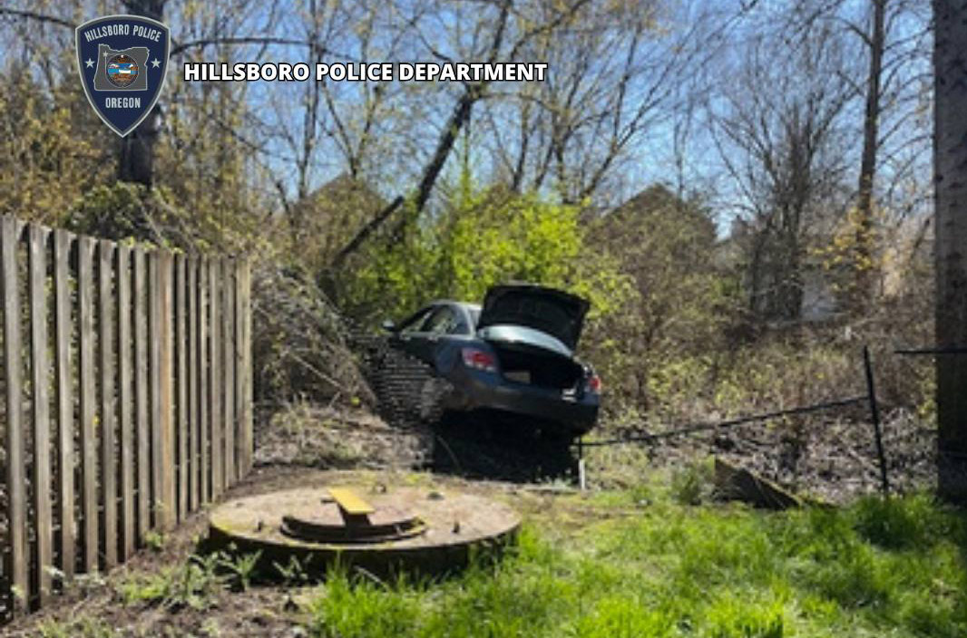 With assistance from the Washington County Sheriff’s Office K-9 team, the Hillsboro Police K-9 team, and the Washington County Remotely Operated Vehicle Team using a drone, officers located the driver / suspect and took him into custody without further incident. Police later recovered a firearm from inside the vehicle after the driver admitted to possessing it.