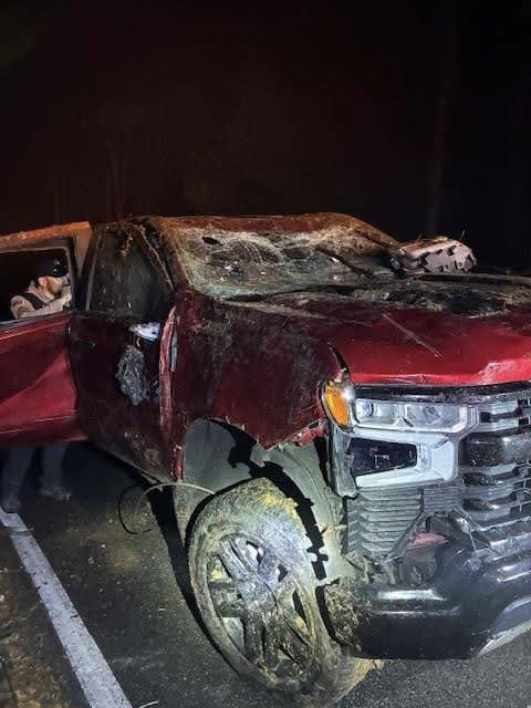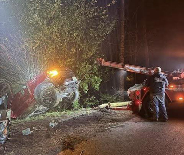 The Coos County Sheriff’s Office said it is investigating a late-night crash that left a truck overturned down an embankment and caused significant damage along Fairview Road on Friday, April 10.