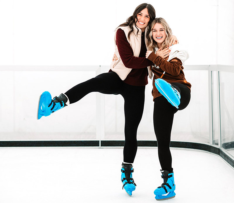 To assist younger or less experienced skaters, the rink provides four polar bear–style balance aids designed to help users navigate the synthetic ice. That's the large, colorful walker-like things you see some pushing around in the photos here.