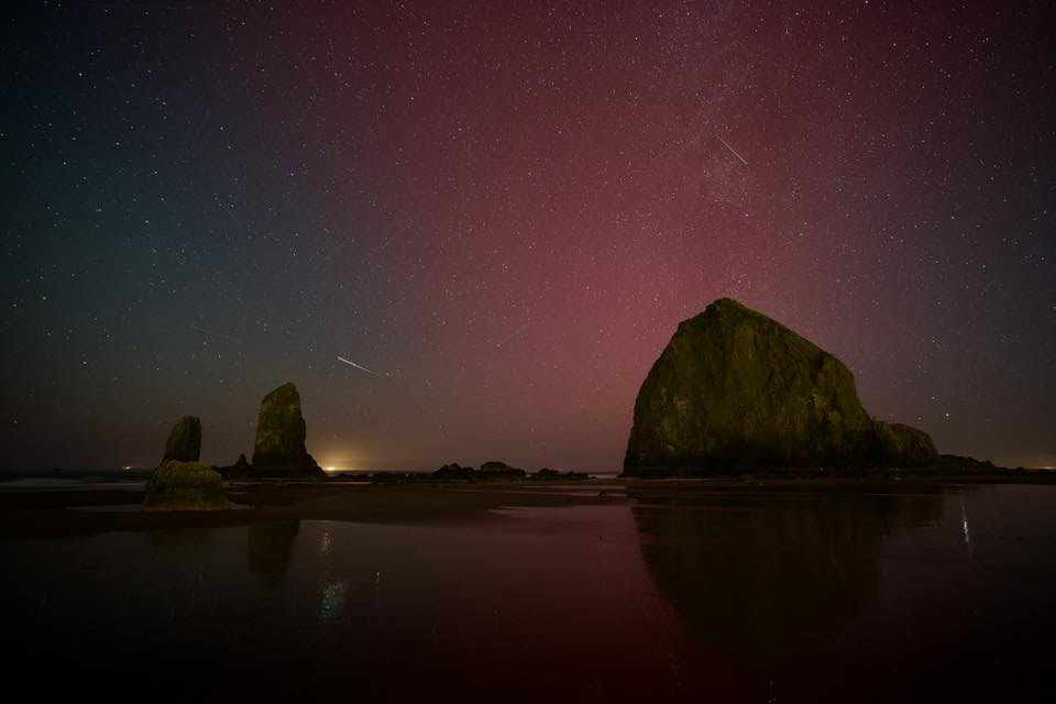 Cannon Beach always seems to get the money shots when it comes to Oregon coastal auroras. Trish Pacheco caught just that.