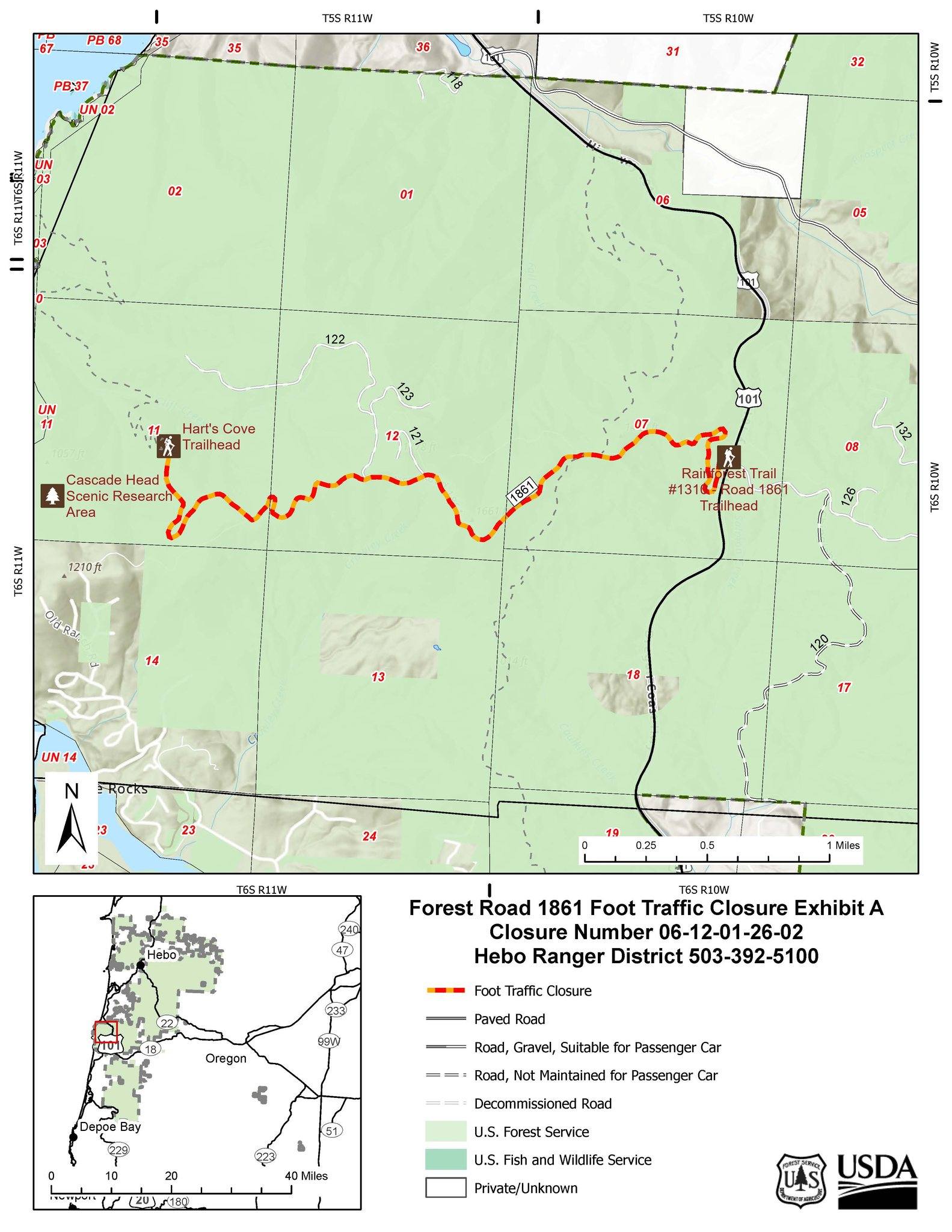 The Siuslaw National Forest just issued a closure order restricting pedestrian, bicycle and other non-motorized access on Forest Service Road 1861 from February 24 through March 31, 2026. The announcement came this week. A separate order barring motor vehicles on the same road has also been renewed through 2028. Both measures are tied to ongoing evaluations of a landslide that severely damaged the route in 2021.