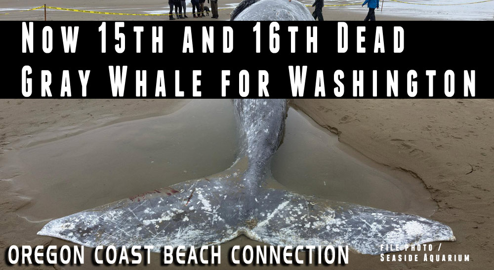 (Ocean Shores, Washington) - More dead gray whales have appeared on or just off the Washington coast, making this the 15th and 16th deceased grays to hit the region since 2026 began.