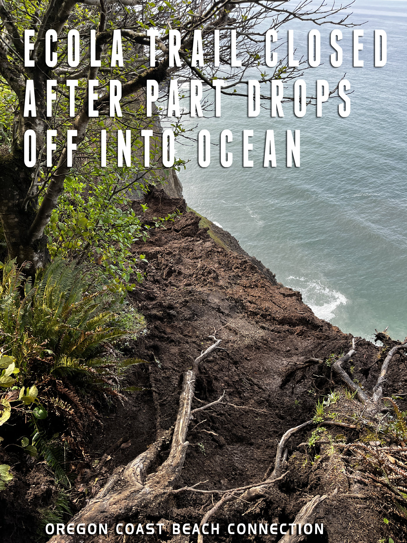 “Oregon State Parks has closed the west section of the Clatsop Loop Trail at Ecola State Park due to significant and ongoing slope failure,” Baden told Oregon Coast Beach Connection. “This portion of the trail is actively collapsing and, in several areas, has completely eroded into the ocean. Conditions are extremely hazardous, and public access is prohibited for everyone’s safety.”