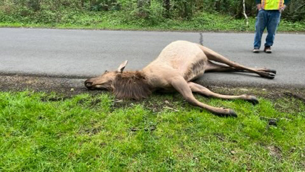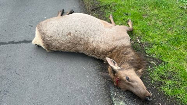 “A witness reported seeing a vehicle leaving the area at a high rate of speed before the elk was discovered,” said OSP.