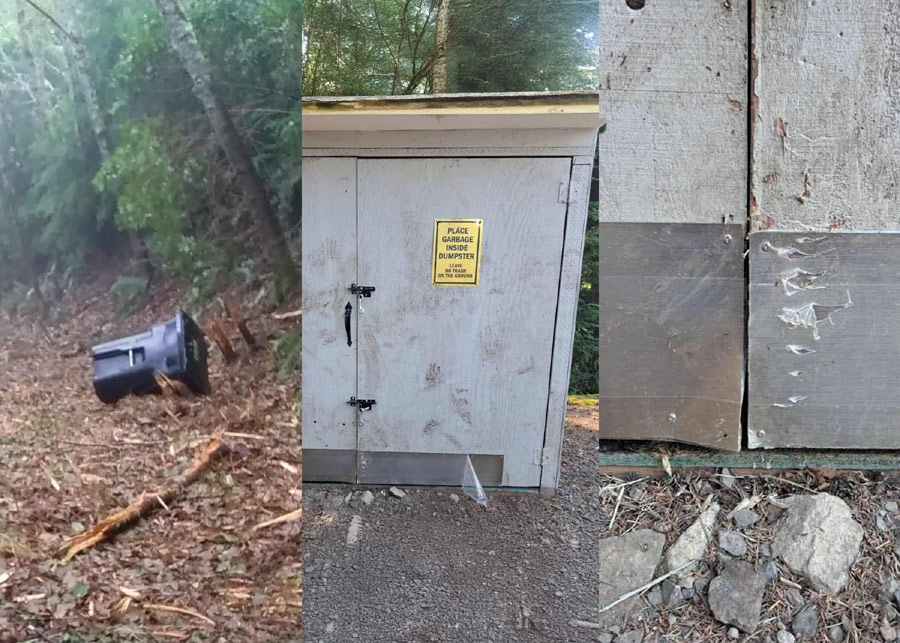 Photo Alicia Harck.: A black bear tried its best to get into a Neskowin homeowner’s bear resistant trash can.
