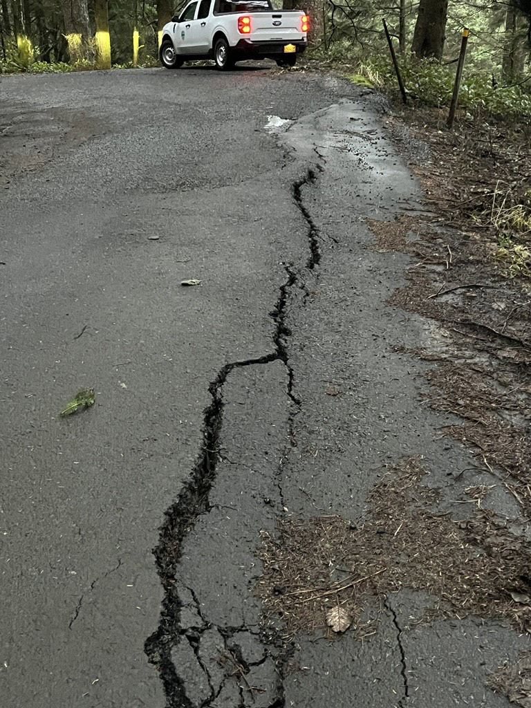 (Cannon Beach, Oregon) – It's been a long, dark winter for some on the Oregon coast. Cannon Beach's Ecola State Park got shut down again late last year – but was abruptly opened on Monday without fanfare or announcement. (Photos OPRD - above: northern section of the road as it started to crack).