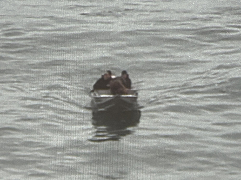 Within minutes, rescuers were able to spot them thanks to their drone, catching sight of a boat clearly struggling against an outgoing tide to get back into the bay.