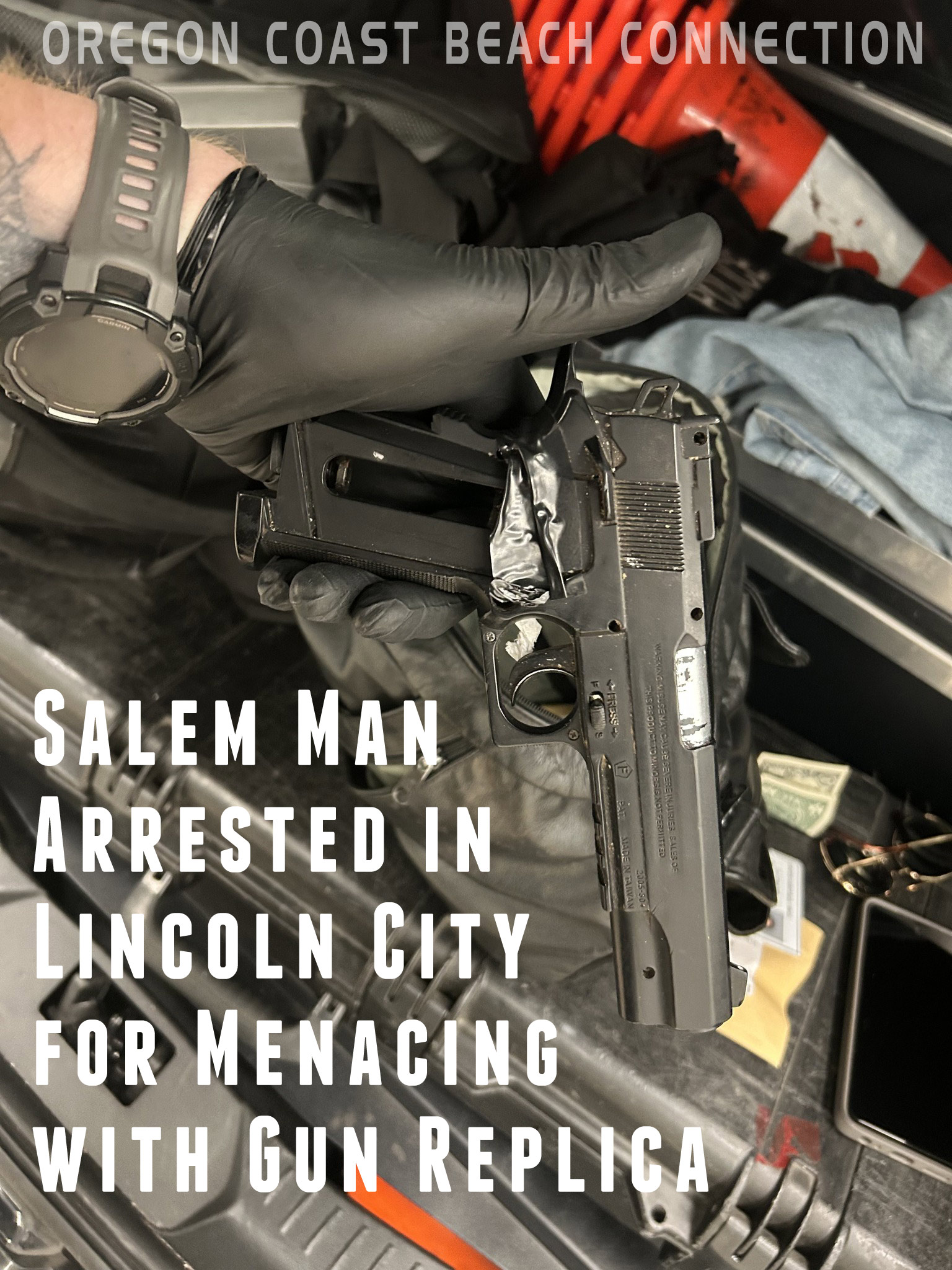 (Lincoln City, Oregon) – Wednesday became a bit harrowing for one group of workers on the central Oregon coast, as a man from the Willamette Valley pointed a fake gun at them and threatened them. (Photo courtesy Lincoln City Police)