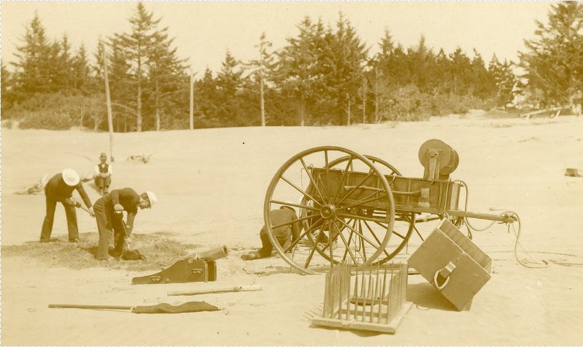 Setting up for the breeches Buoy Drill. CRMM Collection