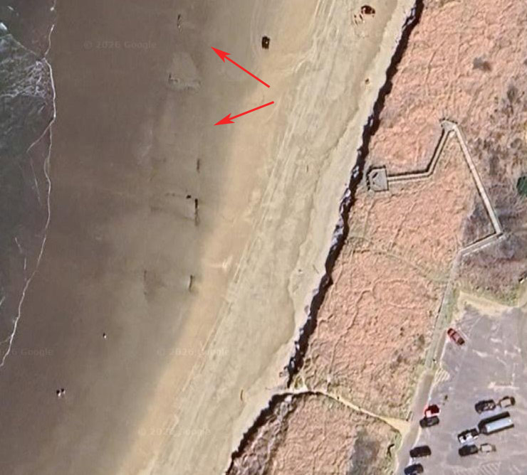 Don't expect to find it during summer. It's often gone by then, or there's very little to see. Sand levels fill up in summer, covering up a lot of things. Still, seeing only a piece of metal sticking up is pretty cool.