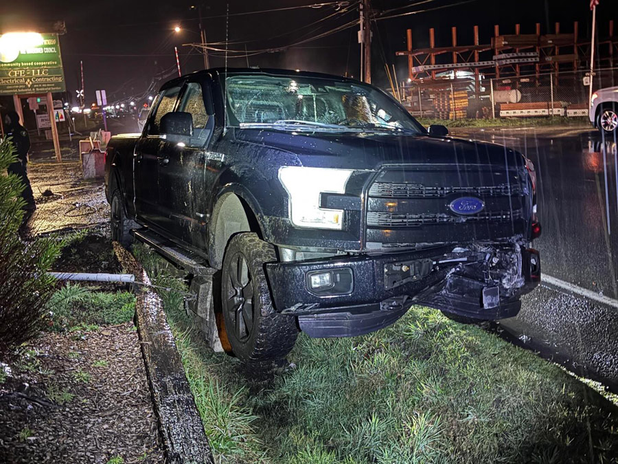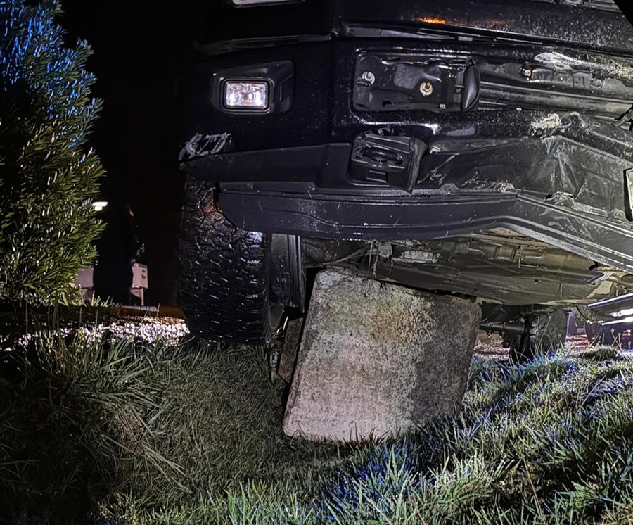 Deputy Smith ran to the scene and found that 60-year-old Laurie E. Lindsay had crashed her 2016 Ford F-150 onto a large concrete block at the corner of North 8th and Airport Way. The sheriff’s office said Lindsay was not injured, but her vehicle was left teetering on the block.