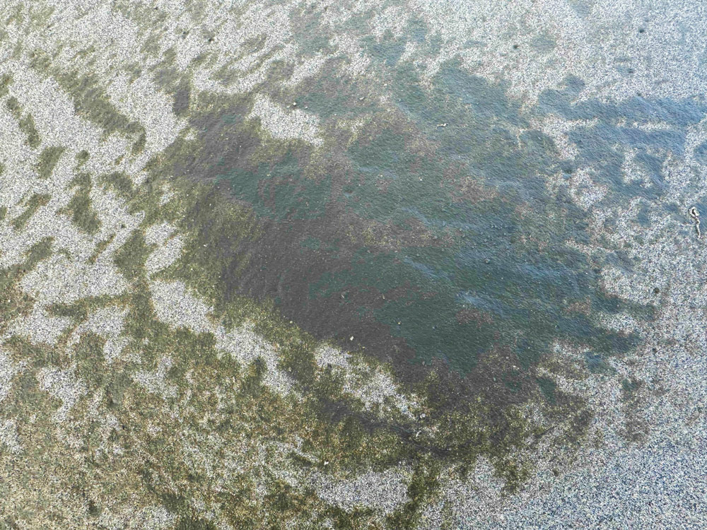 “It’s not really so much of a stain as it is a lot of the stuff accumulates on the beaches,” Chandler said. “The stuff, like the brown bubbles, feels a little oily, but that doesn’t mean it is oil. It just comes from a lot of it piling on the beaches. The tide will come and clean it out. Just like a ketchup stain – it comes right out.”